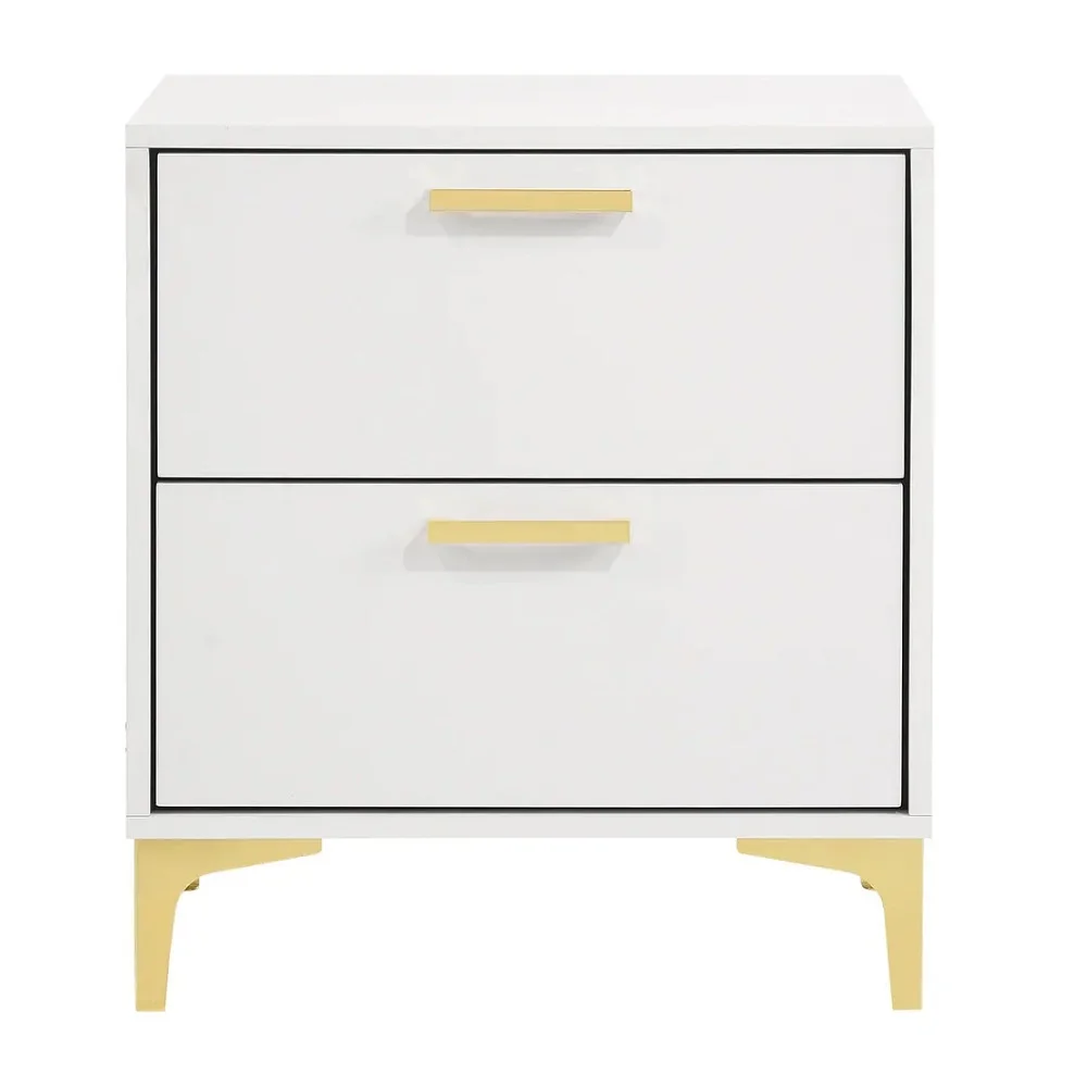 Dispone de dos cajones con correderas telescópicas, que permiten abrir y cerrar suavemente, garantizando resistencia y facilidad de uso. Gracias a su amplio espacio de almacenamiento, es perfecto para mantener organizados objetos personales, accesorios o artículos de uso nocturno. Su diseño elevado con patas doradas no solo aporta elegancia, sino que también facilita la limpieza y lo hace aún más práctico en cualquier ambiente.