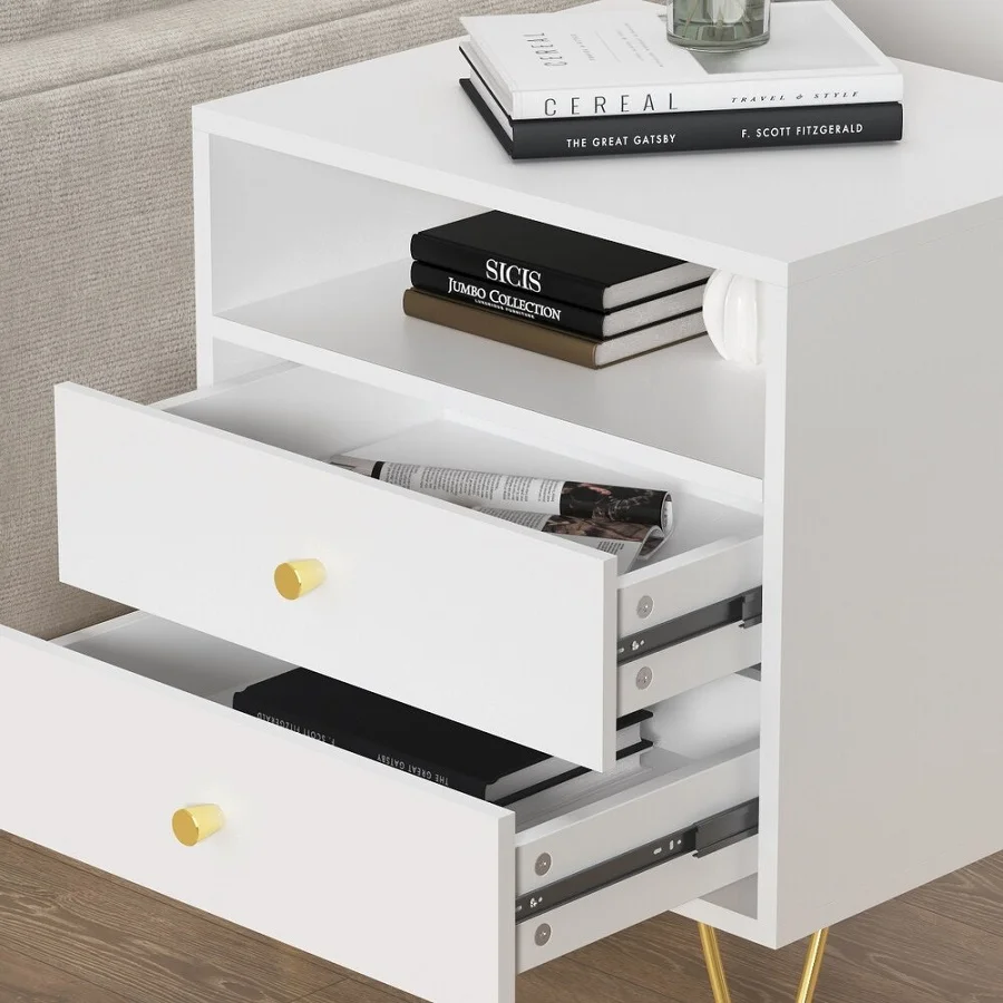 El Velador Ride presenta un diseño moderno y elegante, ideal para quienes buscan un mueble que combine estilo y funcionalidad. Su acabado en color blanco aporta luminosidad y frescura, mientras que sus patas y tiradores en tono dorado realzan su presencia con un aire sofisticado y contemporáneo. Fabricado en melamina de 18 mm, su estructura garantiza durabilidad y un aspecto robusto con finos acabados que lo convierten en una pieza decorativa y práctica al mismo tiempo.