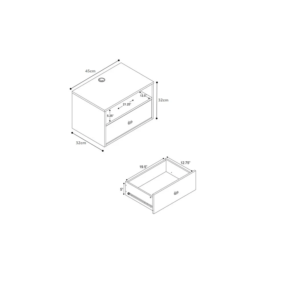 Cada velador está equipado con un cajón con correderas telescópicas, que brindan un deslizamiento suave y confiable, ideal para organizar objetos personales y mantener el espacio libre de desorden. Su estructura en melamina de 18mm garantiza resistencia, estabilidad y durabilidad, ofreciendo un mueble robusto a pesar de su diseño compacto. Al ir montado en la pared, libera espacio en el suelo y facilita la limpieza, convirtiéndolo en una opción funcional, práctica y moderna para el día a día.