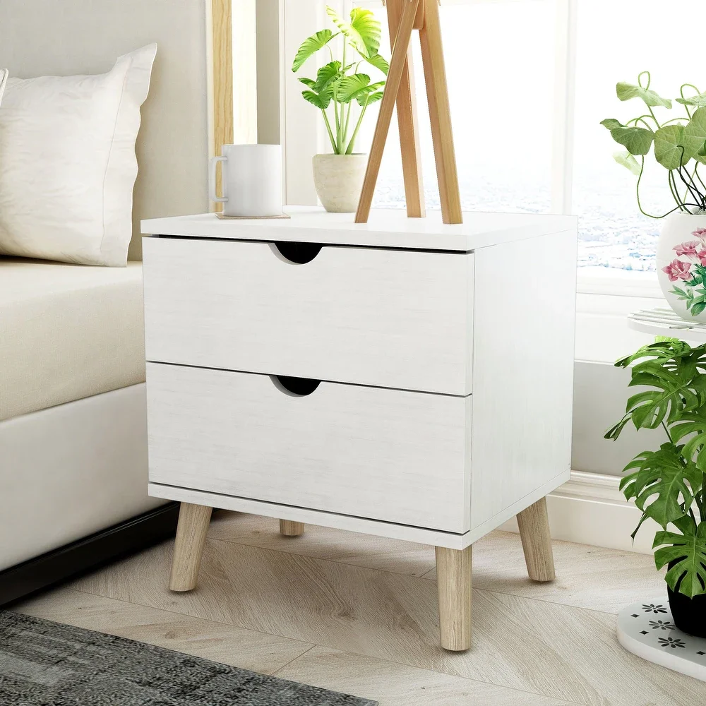 El Velador Suba, en color Blanco, destaca por su diseño elegante y minimalista, perfecto para añadir un aire sofisticado al dormitorio. Su estilo sin tiradores aporta limpieza visual, mientras que sus patas de madera generan un contraste natural que resalta su presencia. Fabricado en melamina de 18mm, asegura resistencia, durabilidad y un acabado moderno de gran calidad.