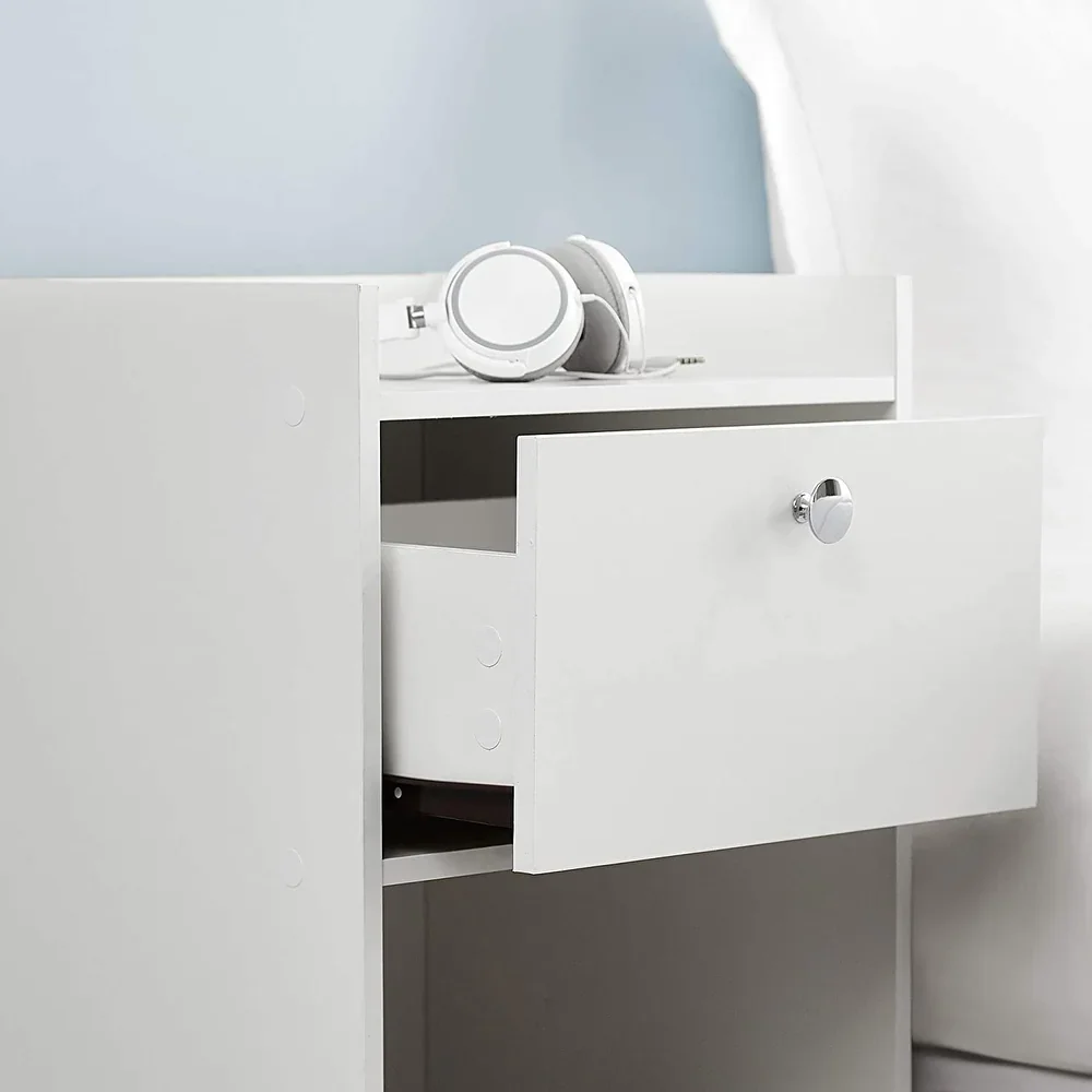 Más allá de su estética, el Velador Tallion destaca por ser un mueble práctico y bien distribuido. En su parte superior incluye un cajón con correderas telescópicas, ideal para organizar objetos personales con comodidad y acceso fácil. Además, su amplio espacio inferior brinda la posibilidad de colocar elementos decorativos o de uso diario, convirtiéndolo en una opción funcional que combina diseño y utilidad a la perfección.