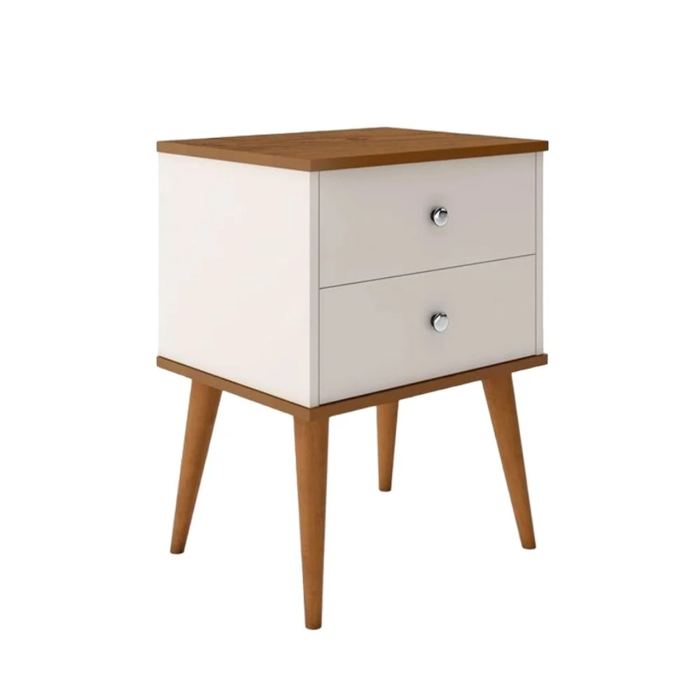 El Velador Testi, en una elegante combinación de Blanco y Coigue, se distingue por su estilo moderno con un toque natural. Sus patas de madera altas realzan la estética, aportando ligereza y un aire sofisticado al espacio. Los tiradores plateados complementan perfectamente el diseño, brindando un detalle sutil y contemporáneo. Fabricado en melamina de 18mm, ofrece un acabado resistente y refinado que se adapta a distintos estilos de decoración.