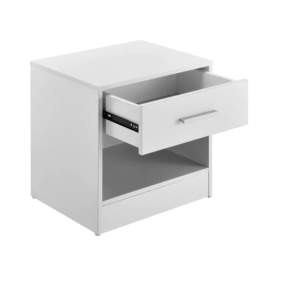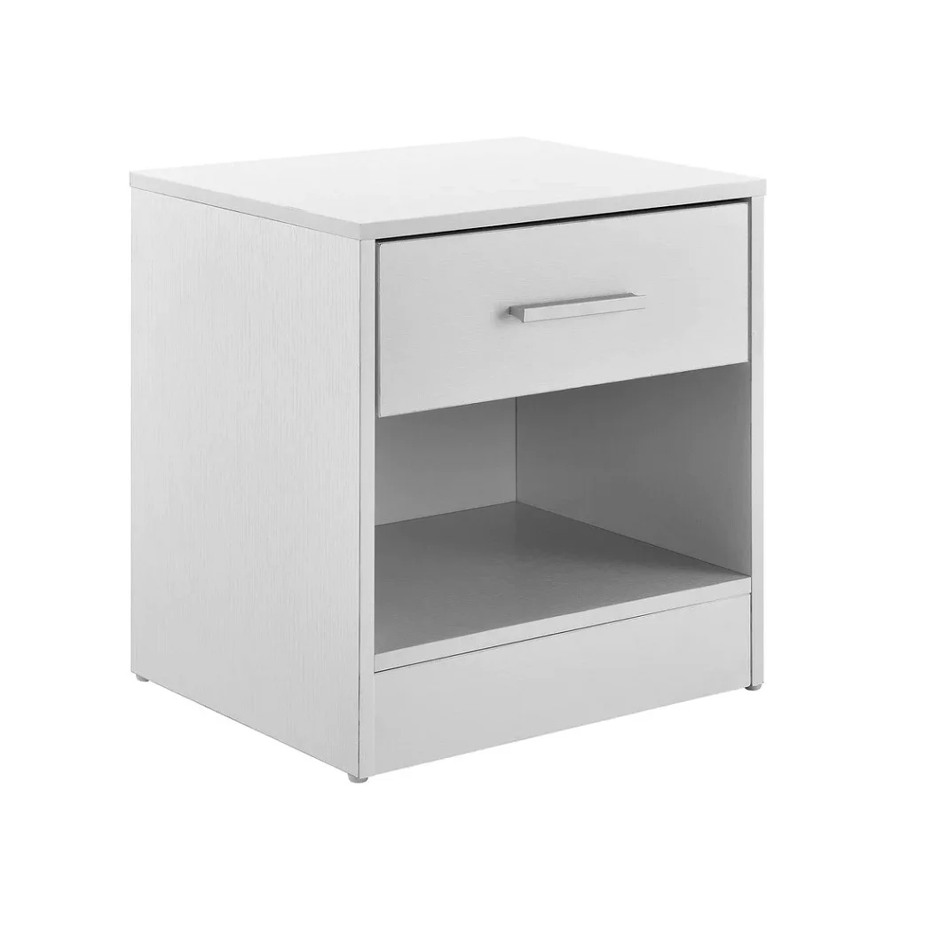 El Velador Trini destaca por su color Blanco, que aporta luminosidad y frescura a cualquier dormitorio. Su estilo simple y elegante se adapta fácilmente a diferentes ambientes, desde los más modernos hasta los más clásicos. La forma cuadrada de su estructura brinda un aspecto equilibrado y sobrio, mientras que el tirador plomo introduce un sutil contraste que realza su diseño. Fabricado en melamina de 18mm, no solo ofrece un acabado refinado, sino también resistencia y durabilidad, asegurando que mantenga su aspecto impecable con el paso del tiempo.