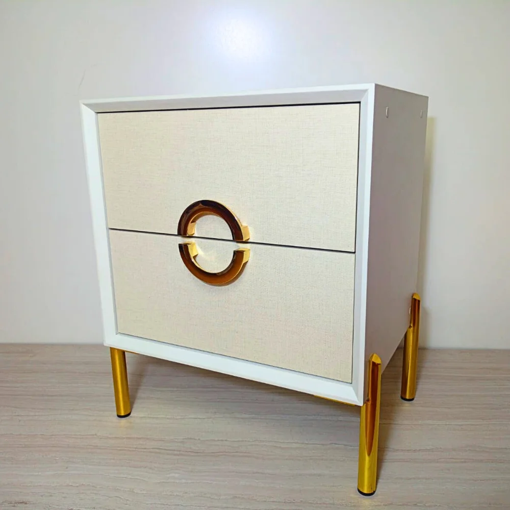 El Velador Zeus destaca por su diseño moderno y elegante, combinando el color Blanco y Lino con detalles en tiradores y patas doradas, que le aportan un aire sofisticado y distinguido. Su estilo refinado lo convierte en una pieza decorativa que realza la estética del dormitorio, creando un ambiente armonioso y lleno de personalidad. Su acabado en melamina de 18 mm asegura una apariencia pulida y contemporánea, ideal para quienes buscan un mueble con presencia y delicadeza a la vez.