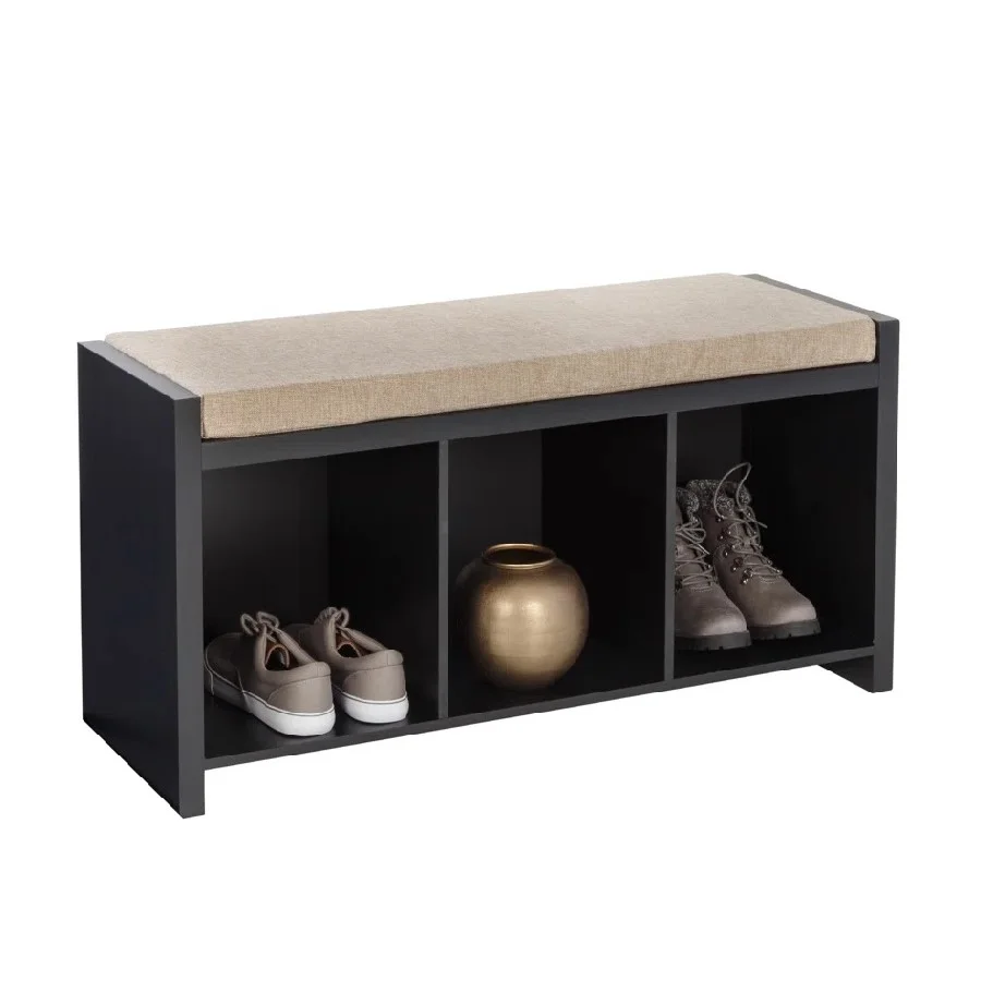 Su capacidad para 3 pares de zapatos la convierte en una opción práctica para dormitorios, recibidores o vestidores. Además, su superficie tapizada no solo añade un toque elegante, sino que también funciona como asiento auxiliar, brindando comodidad al momento de calzarte. Una pieza resistente y versátil que combina organización y estilo en un solo mueble.