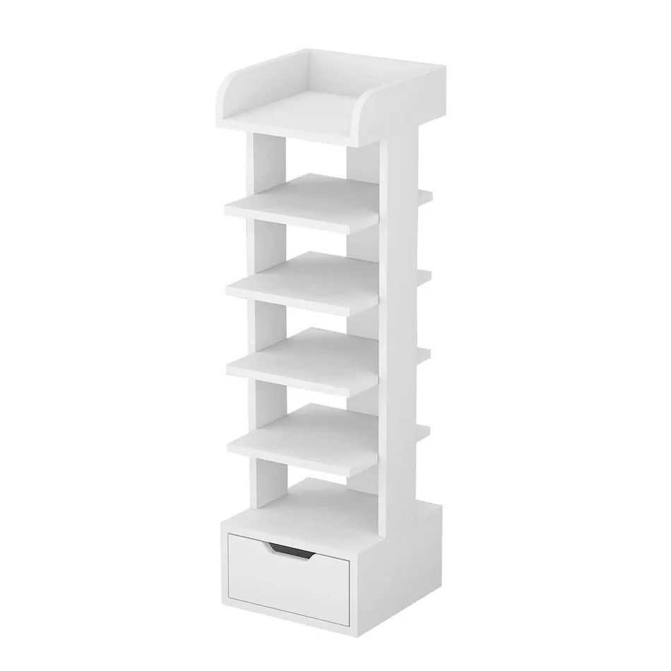 La Zapatera Dani no solo destaca por su diseño moderno, sino también por su gran capacidad de almacenamiento. Con cinco amplios espacios, puede albergar un par de zapatos en cada uno, asegurando que todo tu calzado esté perfectamente organizado y accesible. Además, cuenta con un práctico cajón inferior con correderas telescópicas, ideal para guardar accesorios adicionales o zapatos más pequeños. Diseñada para maximizar el espacio sin sacrificar estilo, la Zapatera Dani es la solución perfecta para mantener tu hogar en orden.